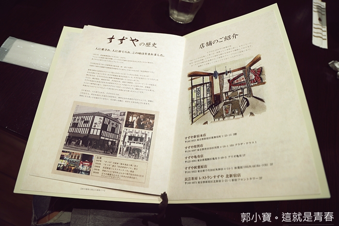 就連菜單都滿有藝術感的,最後一頁還有介紹這家店的歷史,似乎從昭和時期就存在了。