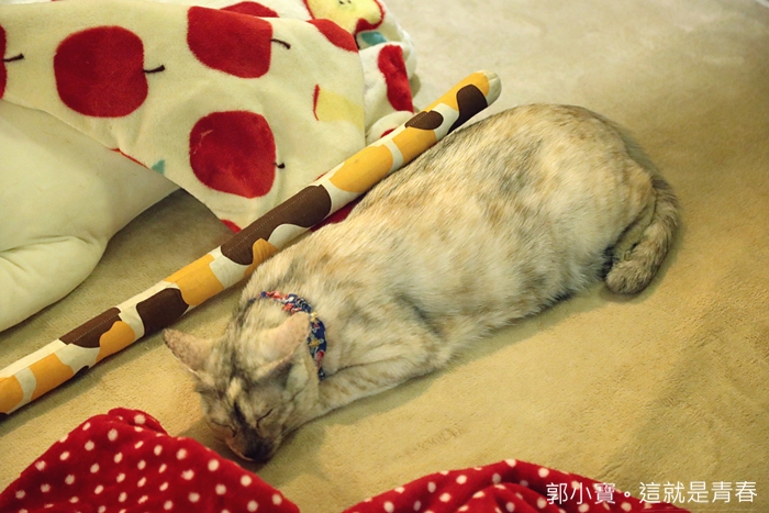 | 這些在地上睡覺的貓咪都可以靜靜的在旁邊輕撫牠,因為我們不是專業養貓的,所以只能看著其他人櫓貓的感覺去輕撫貓咪。 |