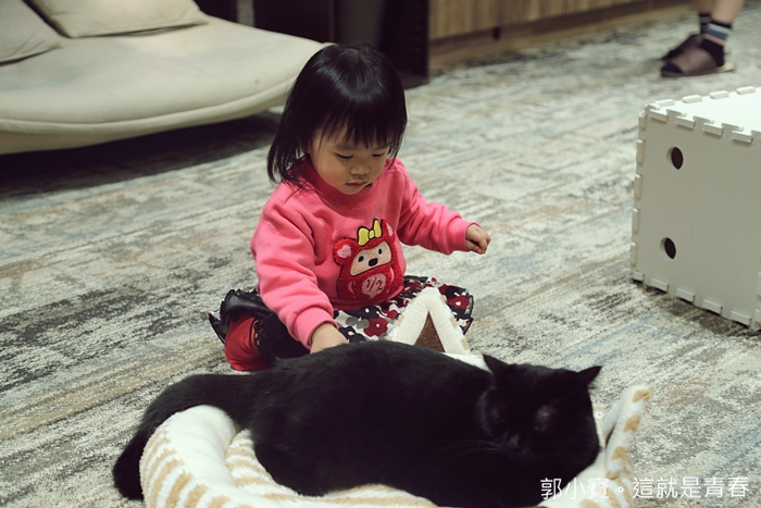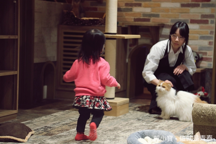 | 女兒陷入在喵星人的世界理,我覺得帶孩子來這邊還滿不錯的,前提是要遵守愛護動物跟別打擾他們的習性為主,家長一定要在旁邊看著,畢竟每個國家的文化可能都有些不同,加上貓咪們也都很溫馴,所以女兒也很開心。 |