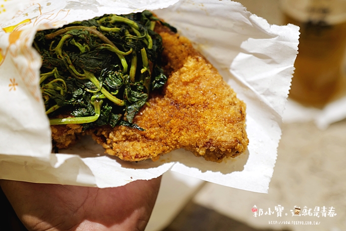 | 雞排上鋪滿了滿滿的九層塔,是非常傳統的味道,不管是炸粉還是偏油的雞排我都還滿喜歡的,肉汁保留的相當多,搭配大量的九層塔真的挺滿足的,是我小時候吃的味道。 |