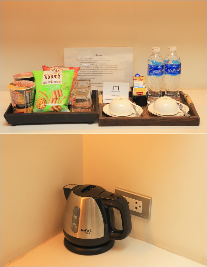 | 茶水櫃上面擺放的零食跟泡麵需要付費,礦泉水是免費的,不夠的話可以跟櫃台索取,店熱水壺也洗的滿乾淨的,我住飯店都一定要打開店熱水壺看看有沒有洗乾淨。 |