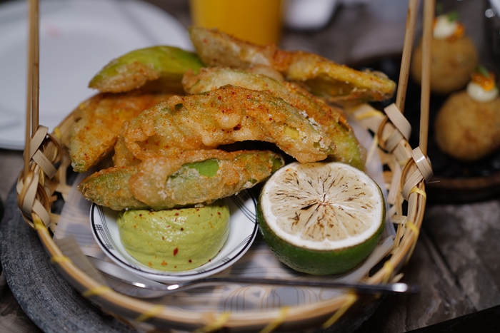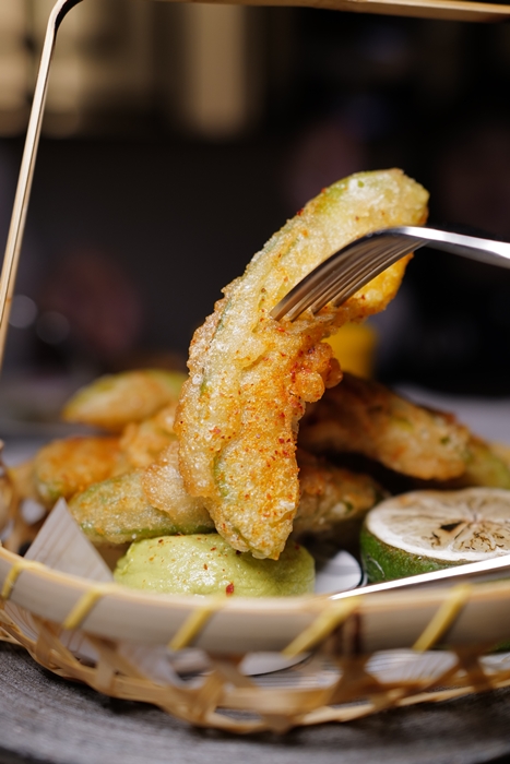 | 牛油果是台灣人口忠的酪梨,對於酪梨這食物,愛它的人超愛,不喜灣它的人則是退避三舍,跟榴槤一樣的感覺,但是在歐美國家可是很受歡迎,等於納豆在日本的存在,將牛油果炸的巷天婦羅一樣,薄薄的麵衣放在口中酥脆的要命,沾點酪梨醬入口,滿滿的酪梨,感覺明天腸子應該會很順暢XD |