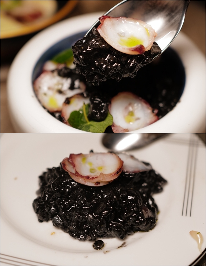 | 這大概是我人生吃過的墨魚燴飯前三名了,濃到感覺墨魚活跳跳在嘴裡噴汁,但是卻不會過嫌過膩,米飯煮的恰到好處剛剛好,香氣濃郁我一整個超愛的,搭配薄切的章魚片,讓人愛不釋口。 |