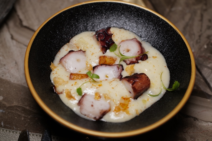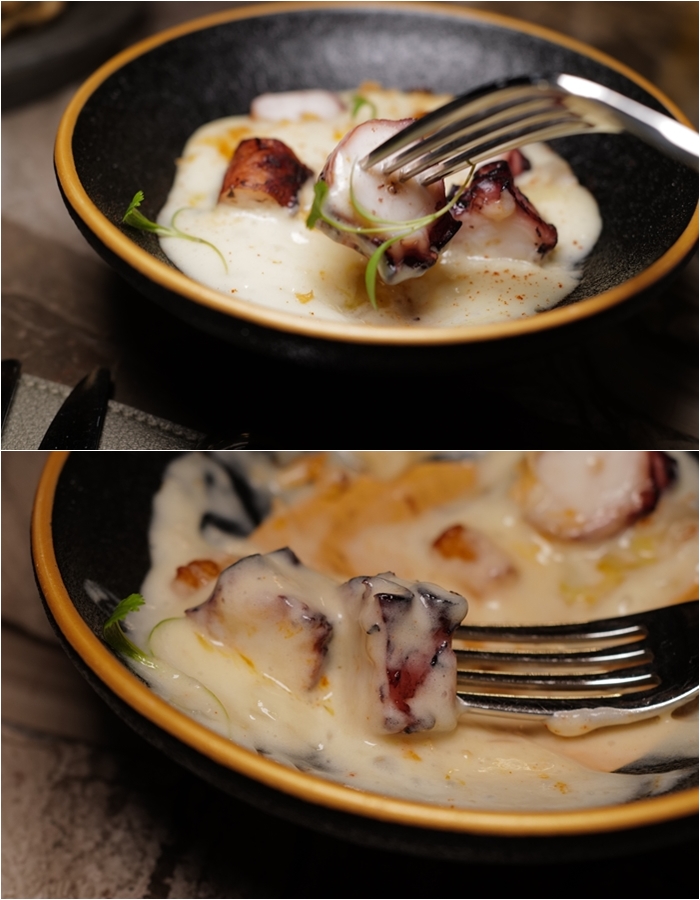 吃了一口或馬上喜歡上,章魚新鮮彈牙,挖上蒜片跟奶油超美味,一口接一口。 |