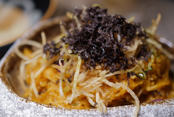 | 本來上桌想說又是馬介休,但是這一道菜也隱藏版的招牌菜,薯條片的超細,然後炸的特別酥脆,搭配泥狀的馬介休,入口非常濃郁,軟綿的口感還有酥脆的薯絲,真的會停不下來。 |