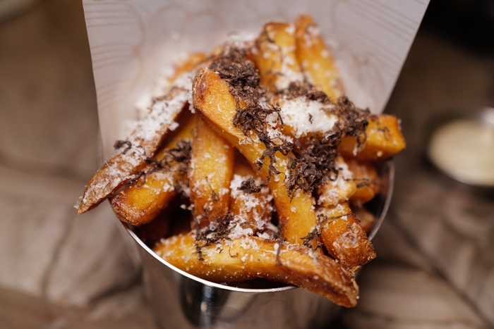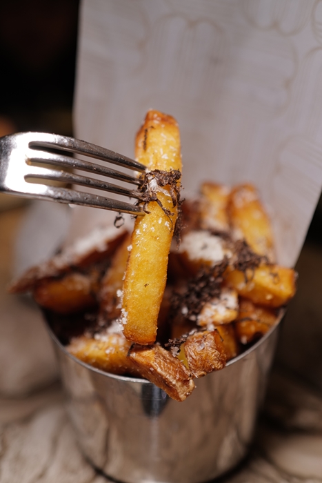 | 薯條帶著些許馬鈴薯皮吃起來的滋味豐富許多,松露的香氣跟起司也很搭。 |