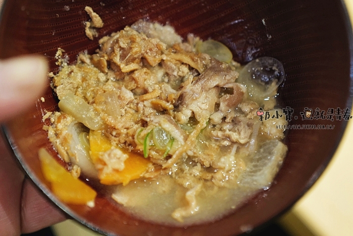 | 套餐的豬肉味噌湯我覺得還ok,味道較淡但是很順口,湯品我印象中可以續加,我喝了兩三碗,裡面用的似乎是碎肉,可以是因為湯品可以續加的原因吧?! |