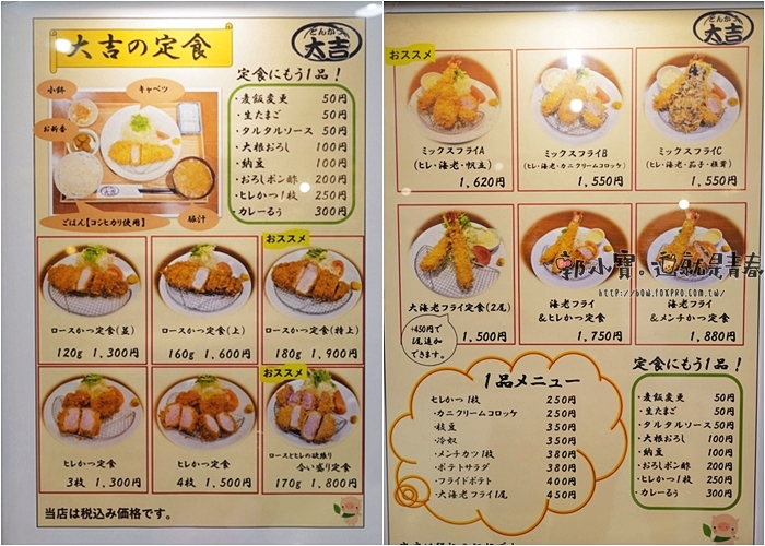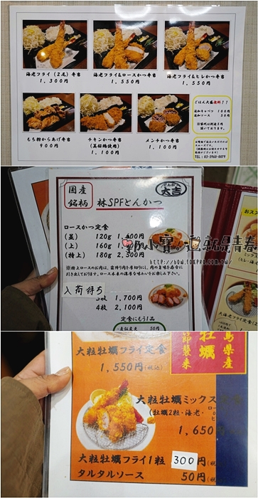 | 門口就貼著とんかつ 大吉的菜單,菜單上都有照片,所以不懂日文也不用擔心,看照片點餐就對了。 |