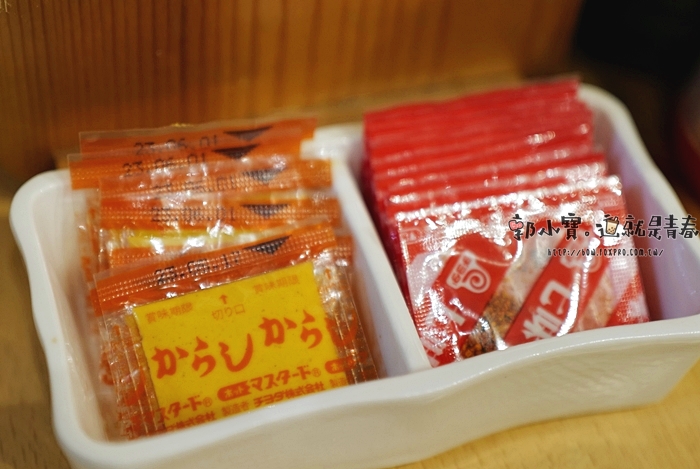| 我還滿喜歡とんかつ 大吉把黃芥末跟七味粉都用成食用包裝。 |