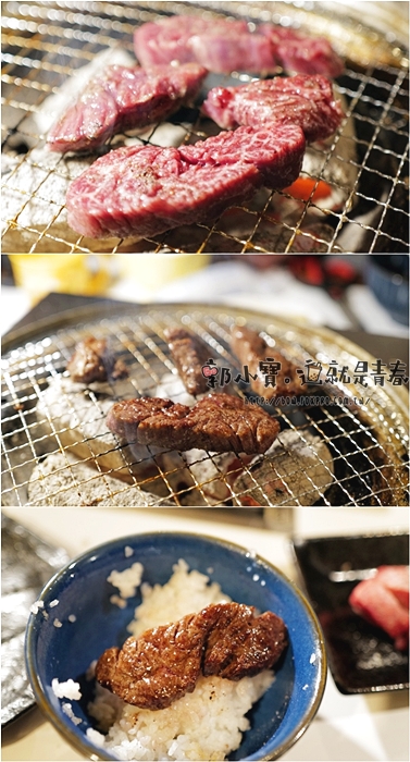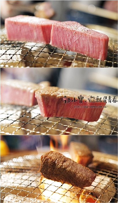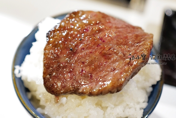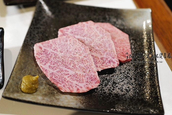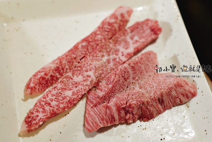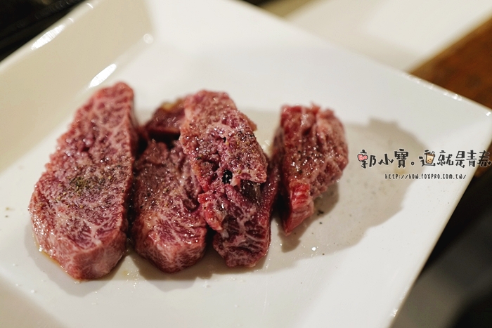 | 這橫膈膜的肉看起來也太太太太強了,比起一般和牛燒肉的橫隔膜肉,牛三郎的肉看起來更厚更宏更多雪花,咬在嘴裡趴機趴機的咀嚼聲一整個過癮無比,這瘦肉口感跟油脂噴發,雙重滿足,橫膈膜的油脂會更多一點。 |
