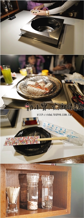 | 使用的是木炭烤爐,為了防止客人被烤爐燙到,所以還有做了一個鐵框將烤爐放在中間,我覺得還滿貼心的,這也是我第一次看到有這種東西。 |