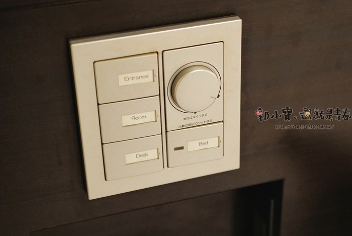 | 床頭板有全室的調整鈕跟燈光開關,但是電燈不多,好像只有三顆崁燈,偏昏黃。 |