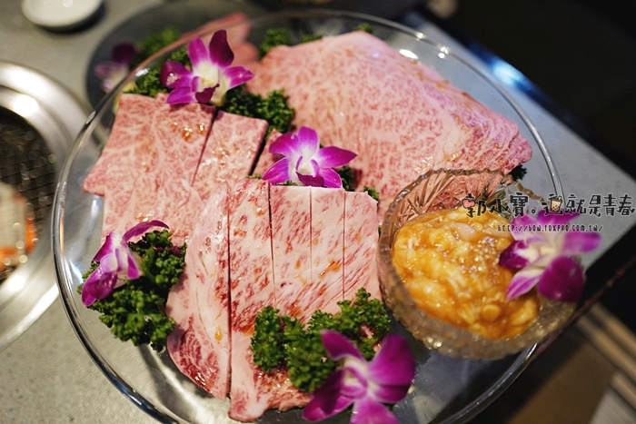 因為菜單上大多都是日文字,所以簡單處理直接點了店家搭配好的盛合,醉心盛合看價位是菜單裡面價位最高的一道,也應該是店家最有自信的肉品部位,就直接點了,送來了超大一盤,裡面總共有三個部位的肉加上一個內臟,肉品的油花看起來都相當厲害。 |
