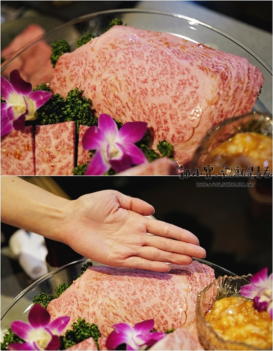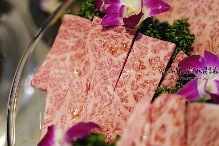 | 油花看起來都是到達了A5和牛的感覺,看起來有點像是牛小排的部位,切的是長條狀,厚度也滿厚的。 |