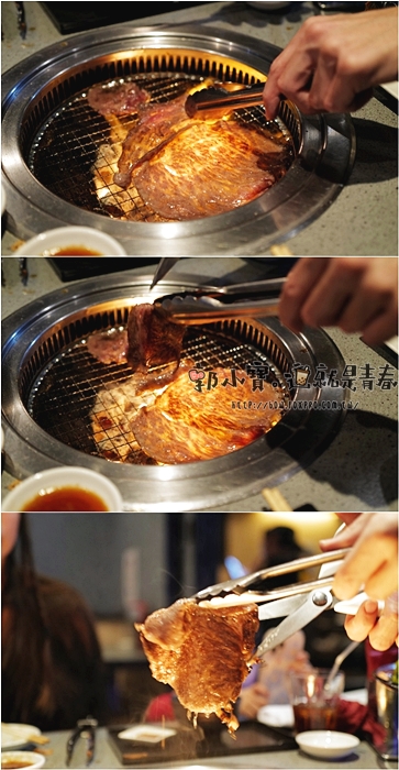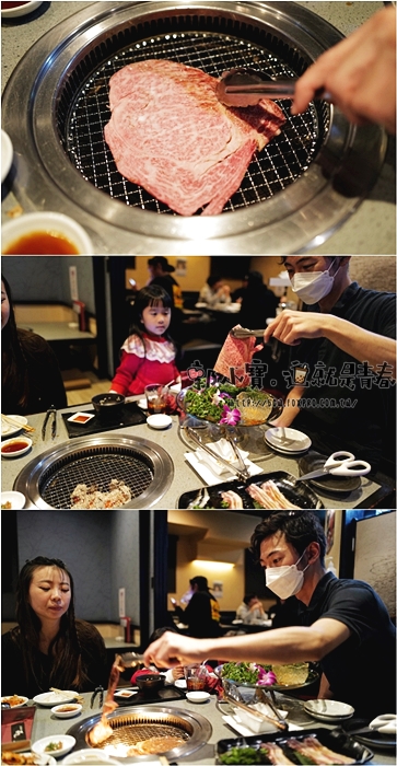 | 小帥哥烤的時候ㄍ本就是肉汁亂噴,烤爐一直發爐,看的我們一家三口都口水直流,這一塊牛肉也太誘人了。 |