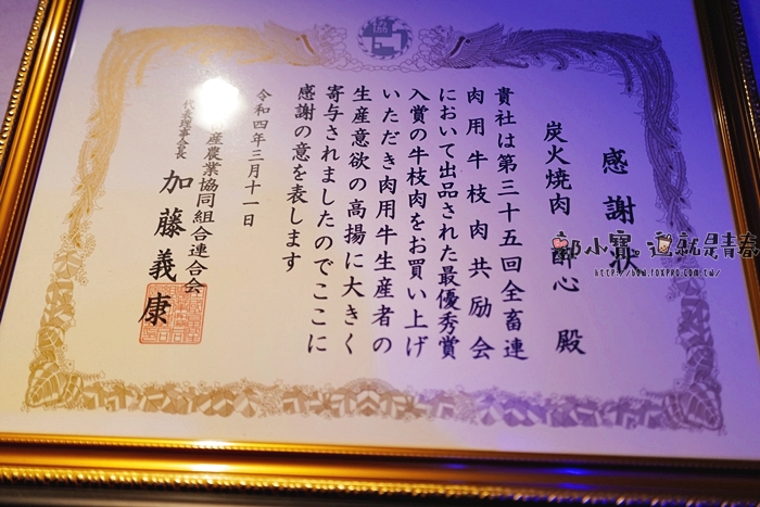| 牆上掛著日本公務單位發給店家的感謝狀,似乎醉心挑選的牛肉都是很不錯的。 |