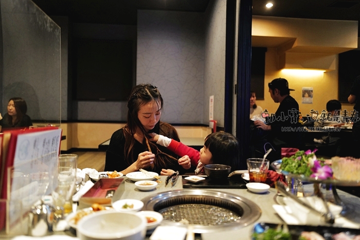 | 醉心燒肉開在大樓二樓,搭乘電梯上樓後一打開電梯門就是櫃台了,櫃台得知我們沒有訂位的時候,一臉抱歉的跟我們說已經客滿了,幸好另一個服務生過來看到我們一家三個後說如果願意等15分鐘,可以給我們一個位子,於是我們就開心的答應了。 |