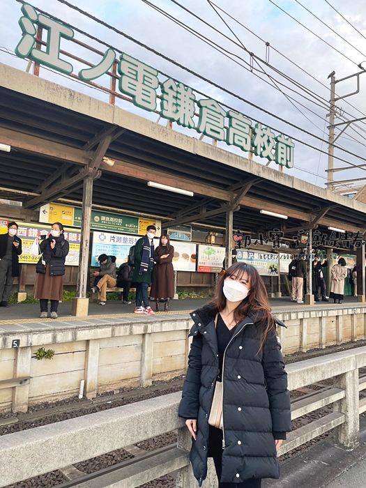 江之電鐮倉高校前大概是除了江之島以外最夯的另類景點了,平平無奇的小吃站,外加一個平交道卻擠滿了朝聖的人潮,不外在這平交道被譽為灌籃高手櫻木與晴子初見面的平交道,那湛藍的海洋加上綠色搭配白色的電車,這經典畫面就可以在這裡捕捉到。