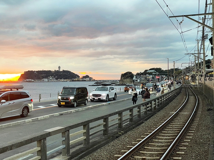 | 這次造訪就盡量只在旁邊拍照了,因為平交道上人潮真的霹靂多,感覺真的很混亂,但是我覺得最美的還是湘南海岸的黃金夕陽,非常推薦可以沿著鐵道漫步地面電車到江島,不要走外圍,走市區小道超有氛圍的。 |