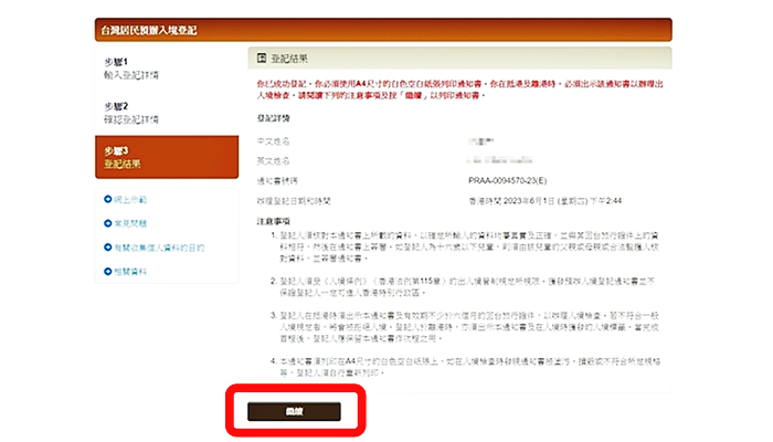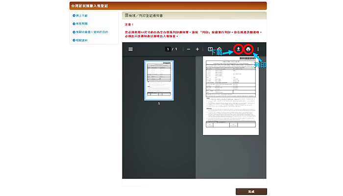 | 到這邊就已經完成登記囉,按下【繼續】就會跳轉到列印頁面。 |