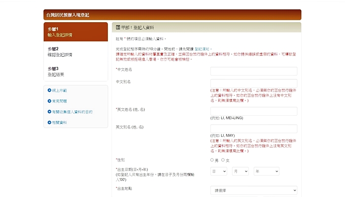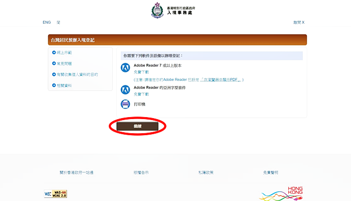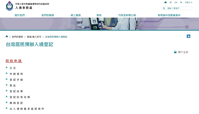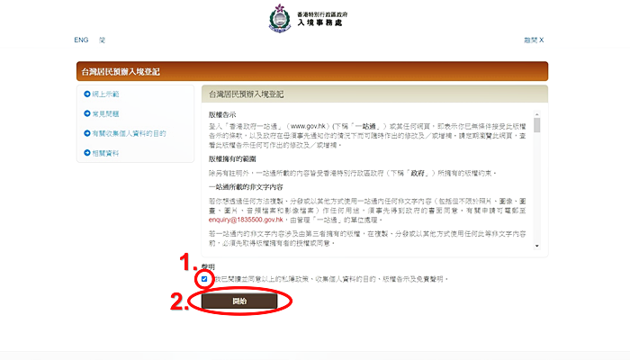 點了之後就會開啟一個新的網頁視窗,跳轉到香港政府一站通的網站,到這邊我們就可以開始填寫資料申請簽證了。