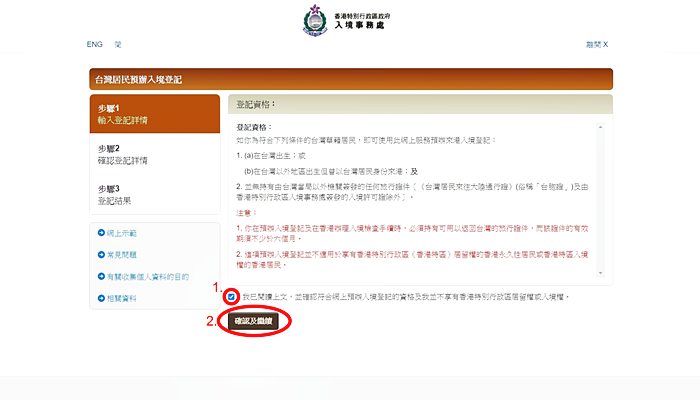 這邊是提示哪些人才有符合申請資格,只要我們是台灣人有身分證就是符合資格,打勾然後確認及繼續就可以了。