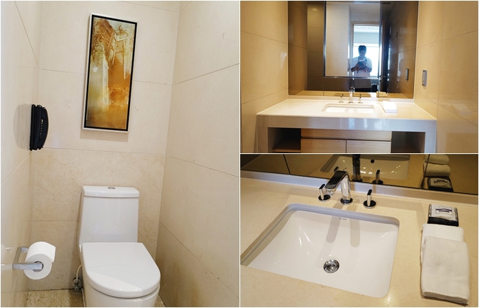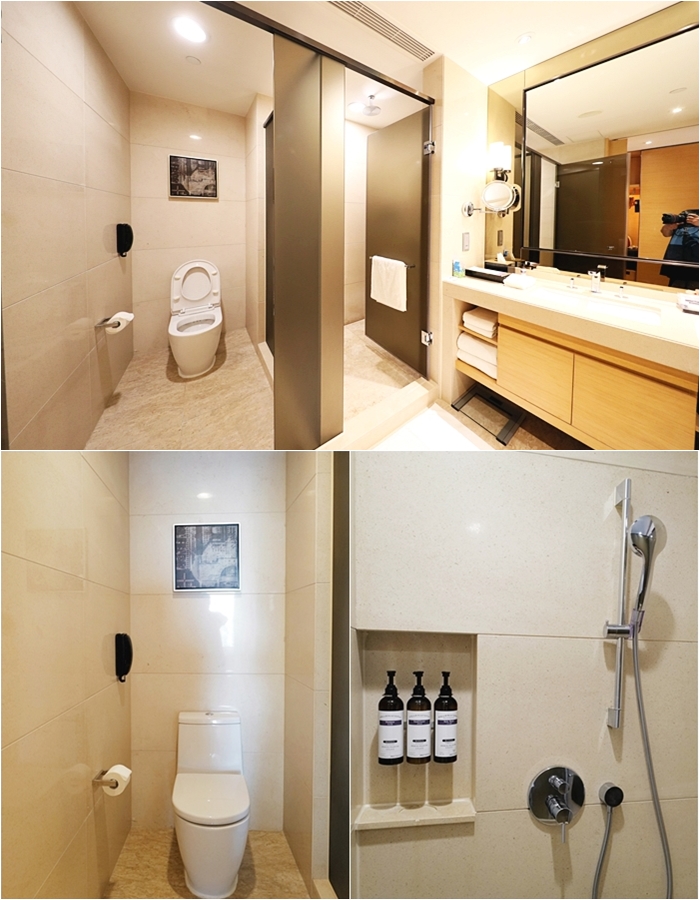 | 衛浴空間的廁所跟淋浴都是獨立單間,淋浴間有按壓式沐浴用品,現在為了環保幾乎酒店都改這樣的備品,淋浴間的水壓非常大,洗澡非常舒服,水溫也不會忽冷忽熱。 |