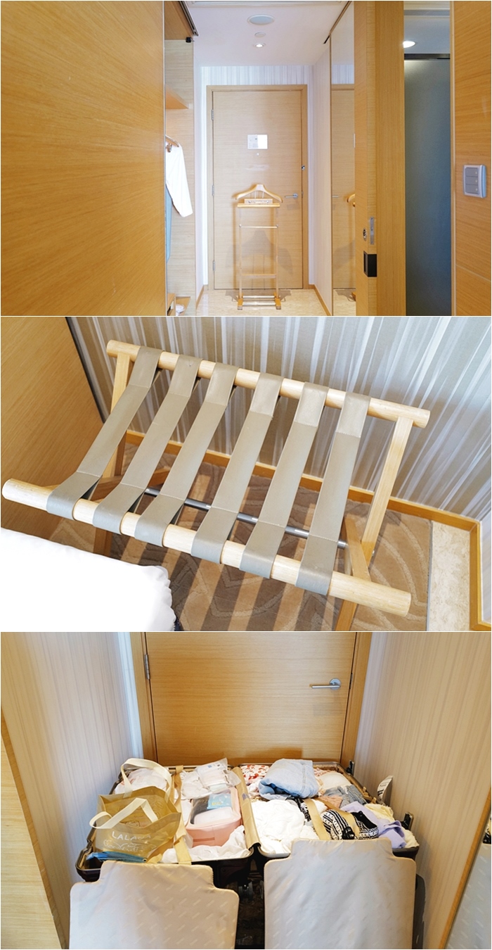 | 房間另一邊則是衣物間跟衛浴空間,我們將行李架放到最後面,這樣打開行李剛剛好完全不戰任何空間。 |