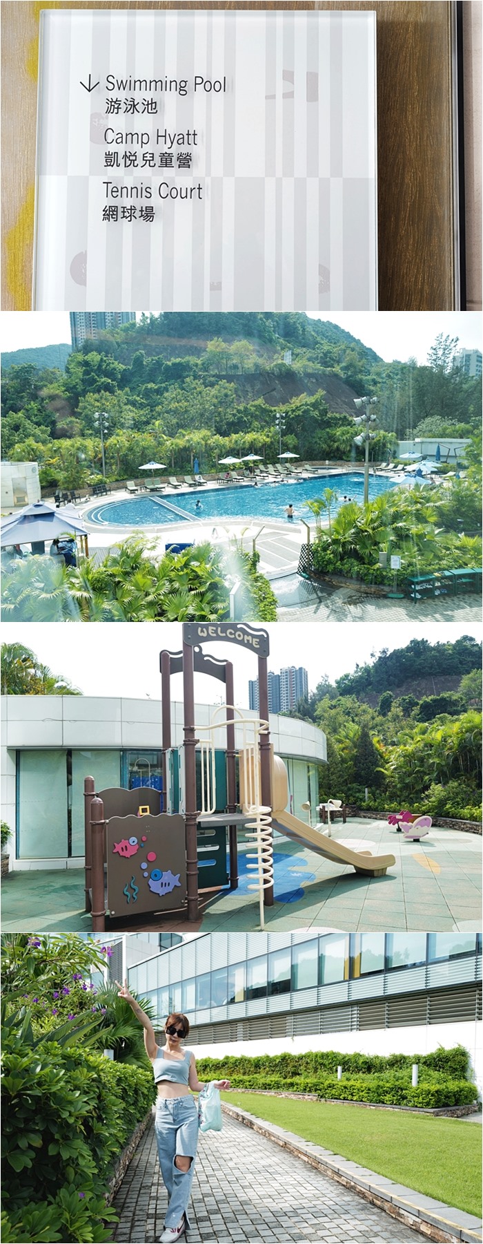 | 戶外的電梯有通往泳池跟兒童戶外樂園,兒童營的器具比較簡單,就是溜滑梯等,但是天氣太熱,我們的目標還是泳池,另外沙田凱悅酒店是我們疫情後到達香港第一家入住的酒店,距離大學站步行的距離不用五分鐘,沙田也是我第一次到達的區域,新界對我來說沒有那麼熟悉,但是來了以後才發現沙田的環境非常好,沙田凱悅酒店這一個區域的造景非常用心,走在這裡彷彿都忘了置身香港。 |