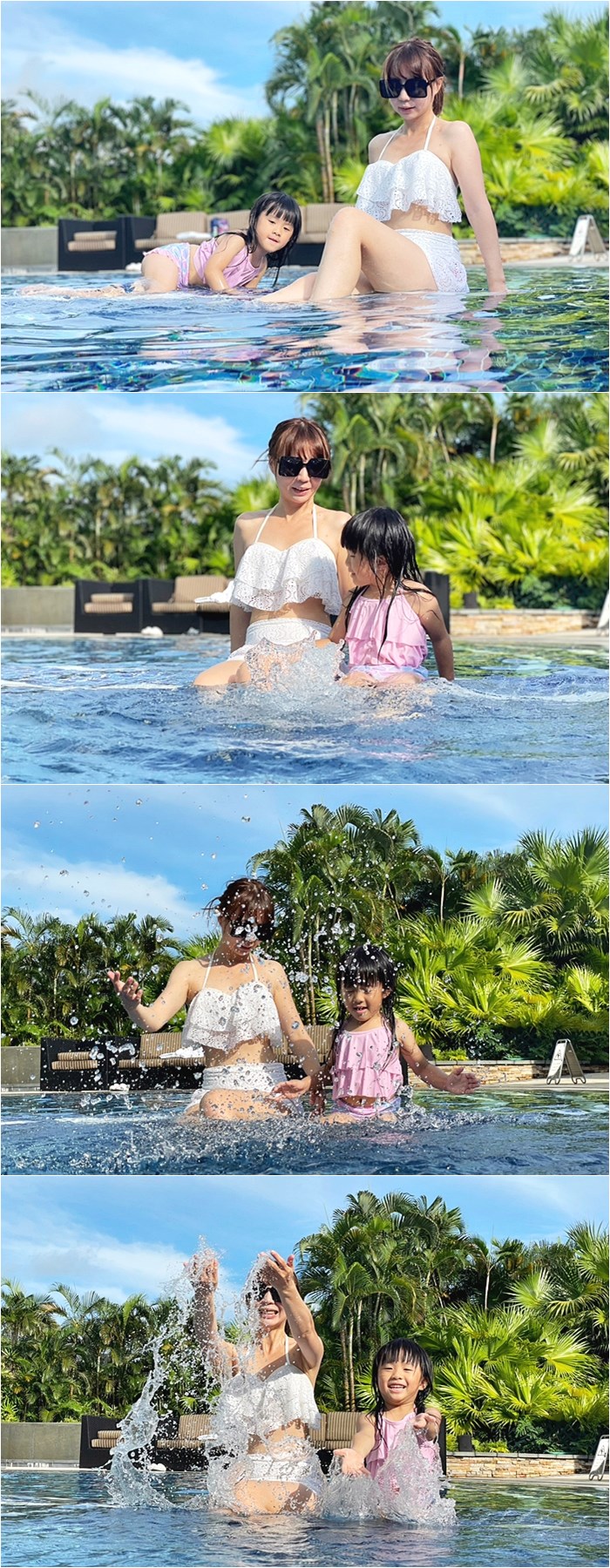 | 第一天下午母女倆足足玩了好久才願意從泳池離開,泳池旁隨時有兩個救生員照看,雖然有救生員,但是麻煩帶孩子來玩的家長還是眼睛不能離開孩子,自己的孩子麻煩自己好好照顧,看看這畫面,根本不敢想像在香港也有這樣的白海藍天加綠葉泳池。 |