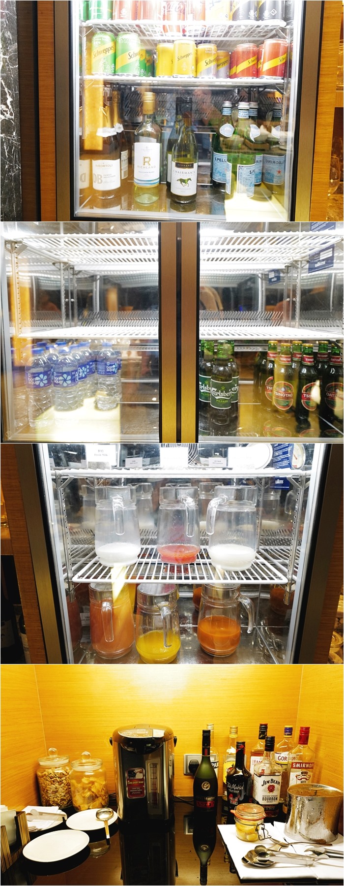 | 行政酒廊提供的酒水也都是不需要付費,且也可以將飲料跟菜色帶回房間享用,汽水、果汁、酒水應有盡有非常豐富,很多房客都直接將這邊當酒吧就喝了起來XDDD |