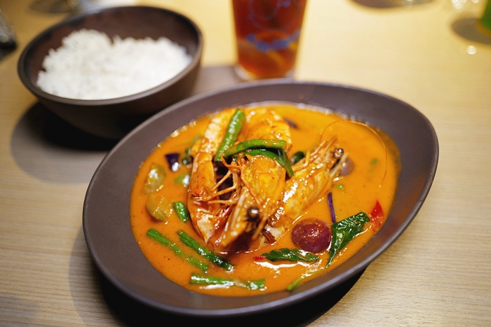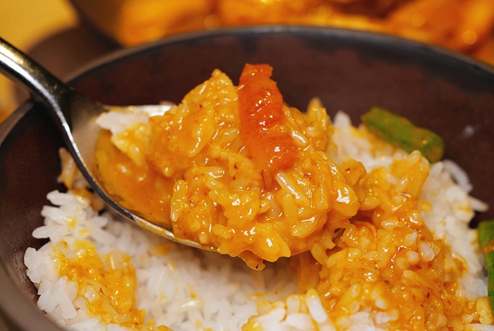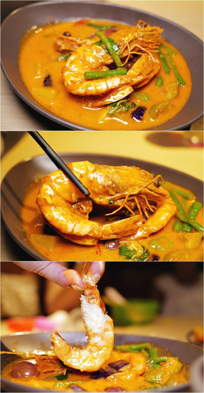 | 大蝦口感緊實彈牙,剝殼後在沾上紅咖哩入口更為滿意,紅咖哩處理的很好,香濃有勁,甚至比在泰國本地吃更合我的口味。 |