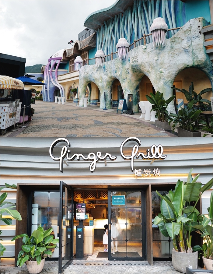 | 如果要在香港海洋公園內找到超有水準的餐廳,除了最有名的海龍王水族餐廳以外,另一家我就非常推薦這一家Ginger Grill爐炭燒,在海洋公園內遊玩的時候就沿路都有看到這一家爐炭燒的廣告掛布非常顯眼,加上太妃本身就相當喜歡泰式料理,所以當下就拍板定案晚餐要來吃這一家,Ginger Grill爐炭燒就在大門口入口不遠處,非常好找到。 |