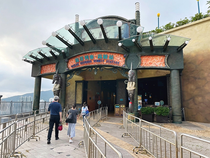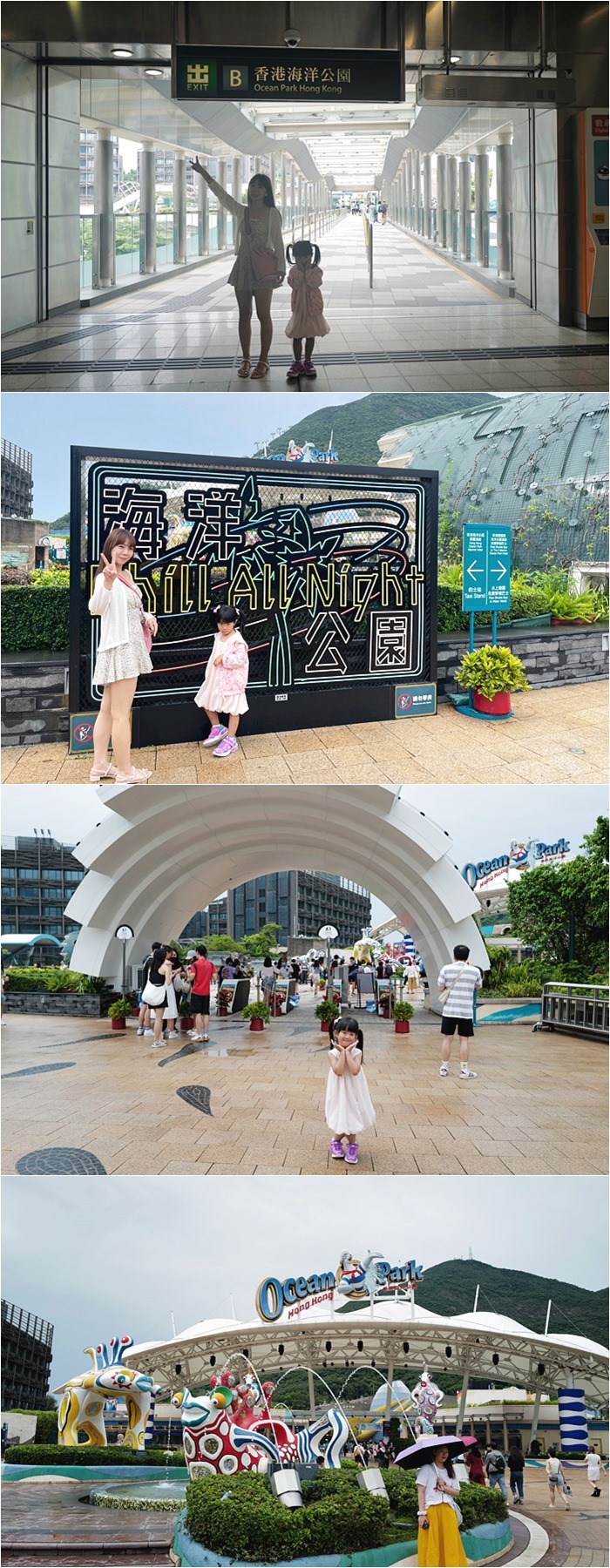 香港海洋公園在台灣人的心中都有一個一定要造訪的衝動,畢竟我們年輕的時候身處在港片港影的黃金時代,不管是看港劇還是電影都很容易出現香港海洋公園,喜劇片、警匪片、家庭片幾乎都很常看到它的身影,所以對我們來說,香港海洋公園就是一個非常歡樂的主題樂園,所以這次女兒的第一次香港遊,我就鎖定了香港海洋公園,要讓我跟女兒一起享受這亞洲頂級的主題樂園,現在交通已經非常便利,直接搭捷運就可以直達海洋公園,一出站口就是海洋公園的入口。