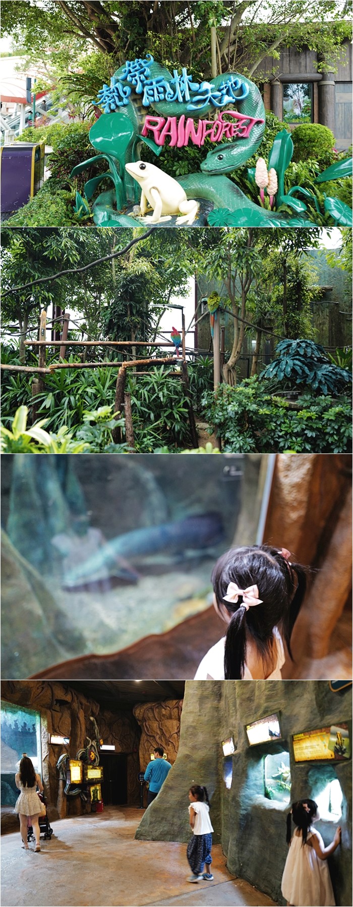 | 熱帶雨林可以看到很多昆蟲跟爬蟲類,各式各樣的爬行動物看得小朋友超開心,一些平常少見的生物都很吸引人。 |