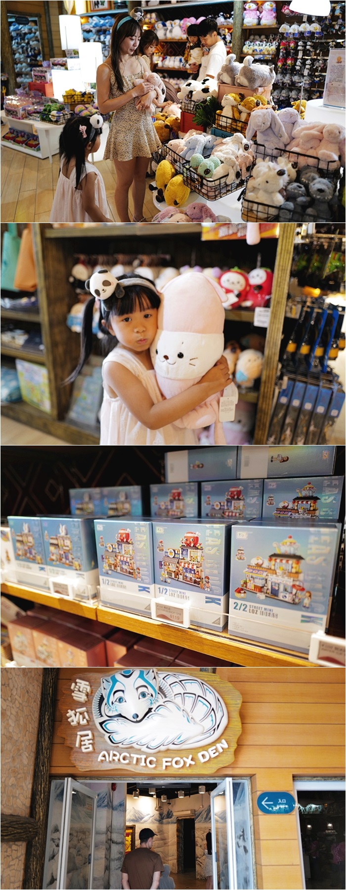 | 一轉眼兩母女又進入到了購物模式,這邊的布偶真的都很可愛,還有很多很值得入手的香港海洋公園造型積木,回家跟孩子一起組裝,最後千萬別錯過雪狐居,很多人都錯過雪狐居,第一次看到雪弧超開心,雪狐居的入口就在北極購物村裡面,連我們都差點錯過。 |