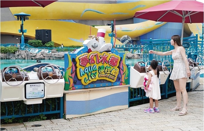 | 最後再讓女兒去玩她想玩的地方,到這裡大致香港海洋公園的區域都走遍了,但是千萬別急著離開,因為香港海洋公園晚上還有超精彩的水舞燈光秀。 |