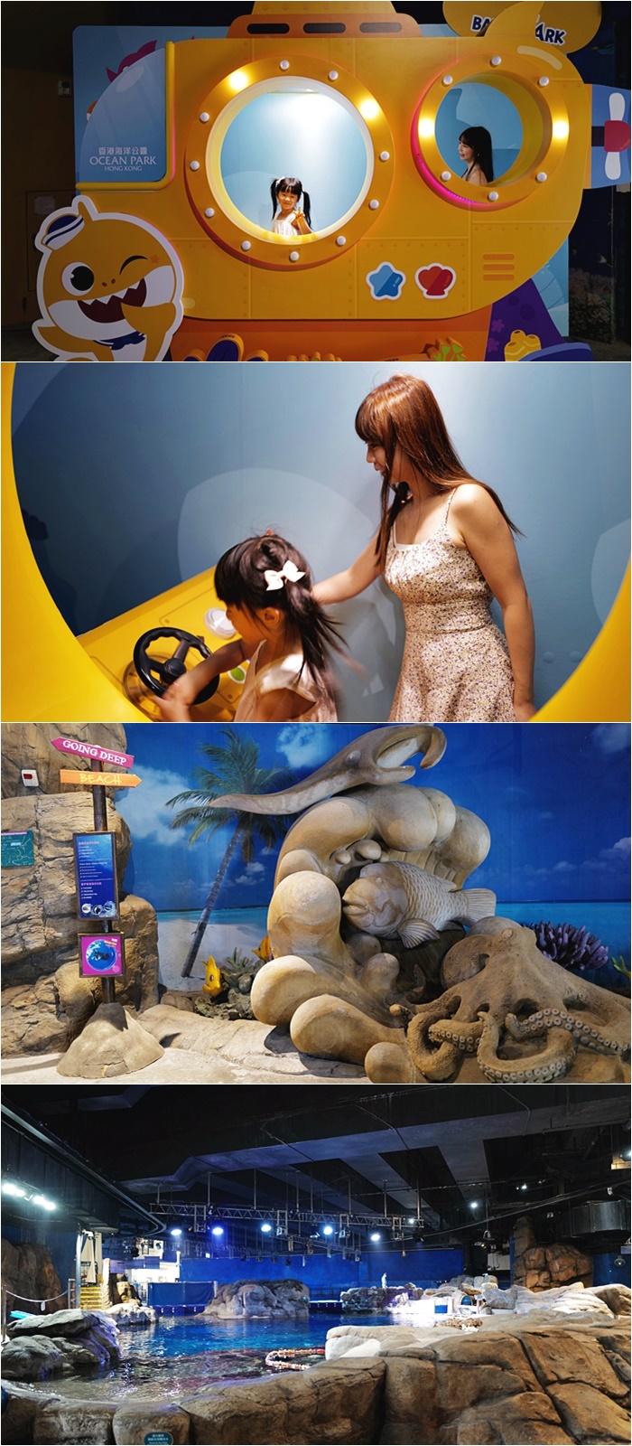 | 一進入裡面還有一艘淺水挺的佈置物,彷彿讓人搭乘這淺水艇就可以出發前往海洋世界了。 |