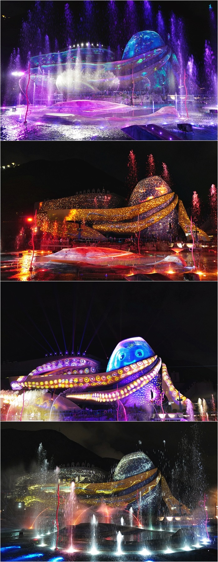 海洋奇觀就是入園最顯眼的建築物,外觀看起來彷彿是一隻八爪章魚趴在上面的感覺,搭乘手扶梯上二樓就可以到達入口。 |