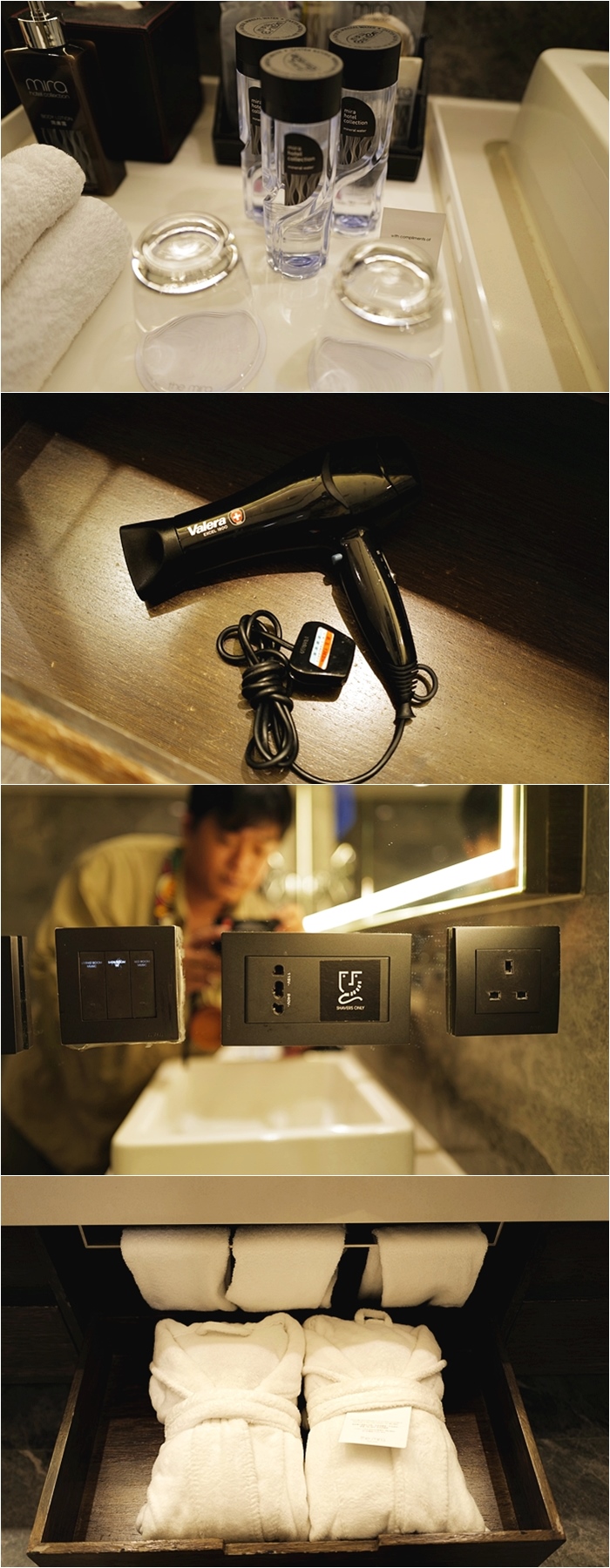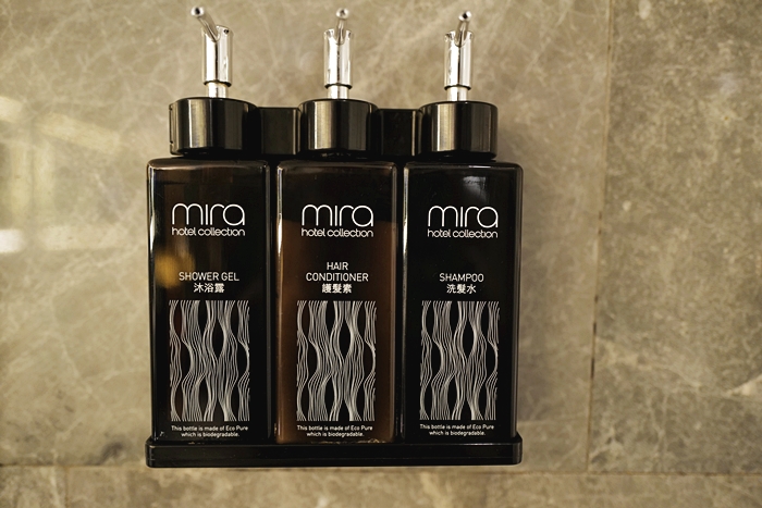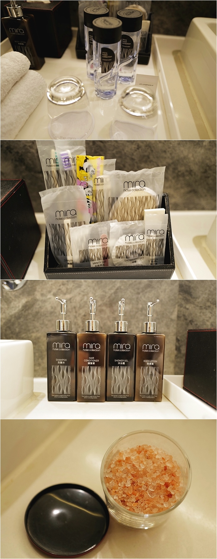 | 備品應有盡有,也有提供小朋友的牙刷跟沐浴乳,對於小朋友來說非常友善,沐浴鹽也同樣放在檯面上,因為環保的關係,現在全部酒店的沐浴用品都採用罐裝填充式,順帶一提美麗華The Mira Hong Kong的牙刷很好刷,毛不會硬梆梆又掉毛。 |