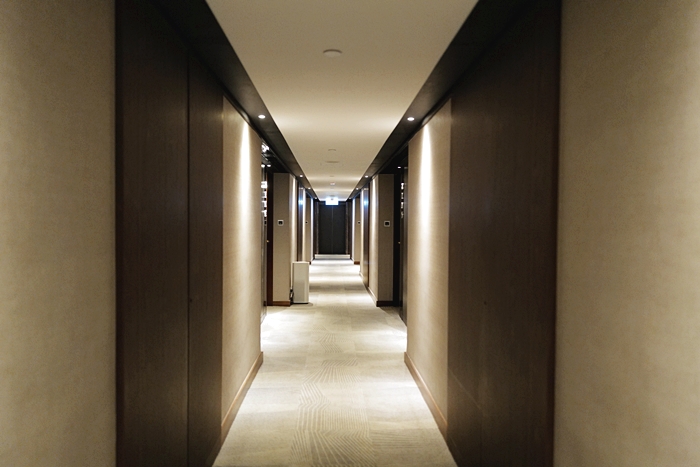 | 房間走道不會太狹小,中短毛地毯踩起來很安靜,避免行進間的腳步聲吵到客人,我們這次入住21樓的房間,六國酒店的隔音算是有嚇到我,當周假日入住好像是快滿房,但是在房間內幾乎沒有聽到其他雜音,很棒的隔音。 |