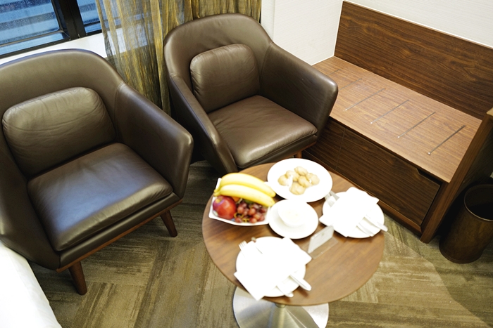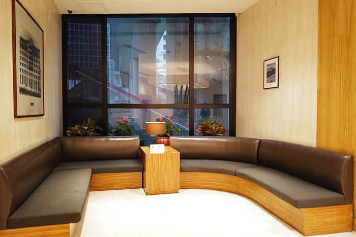 | 因為這地區的白領商務人士較多,所以也擺放了兩張單人沙發,整個擺設跟裝璜都偏商務風格。 |