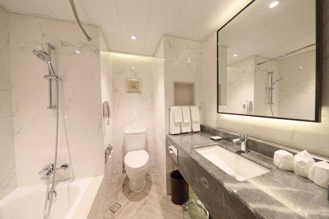 | 浴室屬於一件式,但是也做了不錯個區隔,浴缸跟淋浴是一體的,水量很夠淋浴很舒服。 |