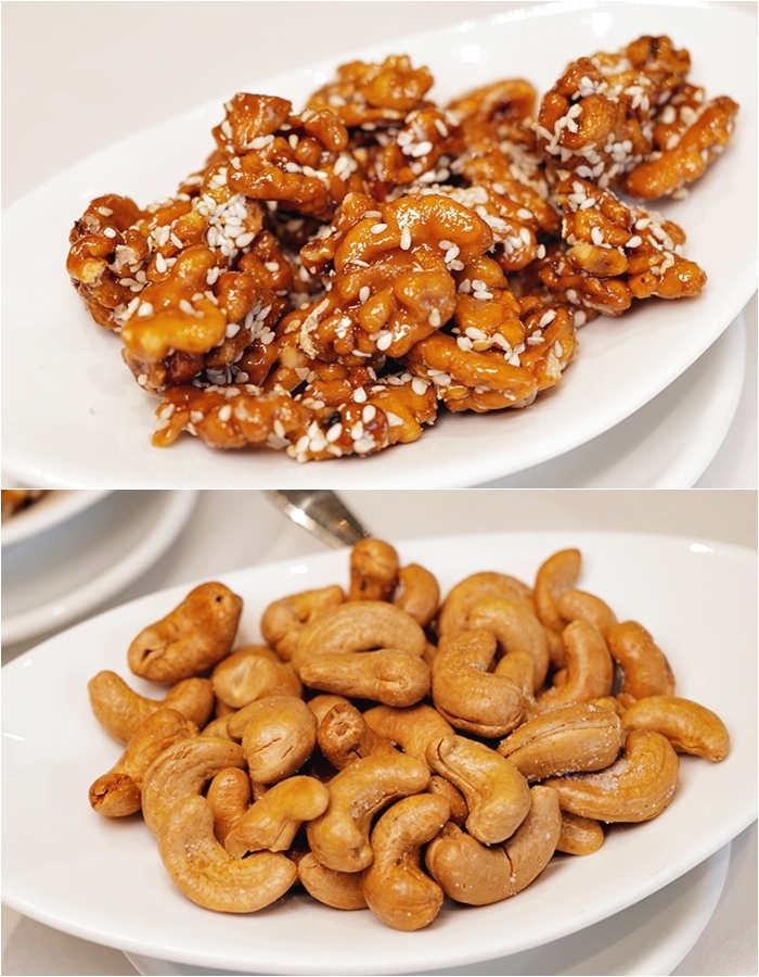 | 餐前小點還有蜜酥核桃跟腰果,好好吃,菜還沒上來這兩盤就被我們吃光了。 |