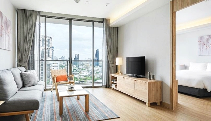 Oakwood Suites Bangkok 提供時尚且寬敞的客房和套房,每間房間都裝備了現代化的設施,如免費無線網絡、空調、平板電視和設備齊全的廚房,讓客人感受到家一般的溫馨和便利。