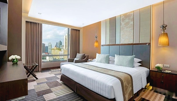 飯店的客房設施豪華且現代化,提供舒適的床鋪、免費無線網絡、空調、平板電視等,為客人帶來愉快的住宿體驗。部分客房還享有城市美景,讓客人盡情欣賞曼谷的風光。