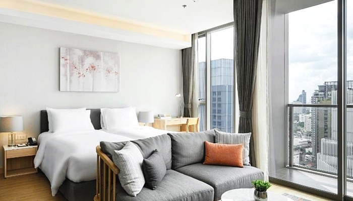 Ascott Thonglor Bangkok 的客房設施豐富,每間客房都配備高品質的家具和設施,提供充足的空間和舒適的床鋪,讓客人感受家外之家的溫馨。客房內設有獨立浴室、液晶電視、私人陽台和免費無線網路等便利設施。