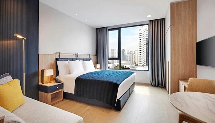 Staybridge Suites Bangkok Sukhumvit的客房設施現代且齊全,每間客房都配備了空調、免費Wi-Fi、迷你冰箱、電視和浴室用品等。客房的裝潢風格簡約舒適,提供高品質的床鋪和家具,確保客人有一個愉快的休息環境。酒店還提供公寓式住宿選項,配備了廚房和餐飲區,適合長期入住的客人。