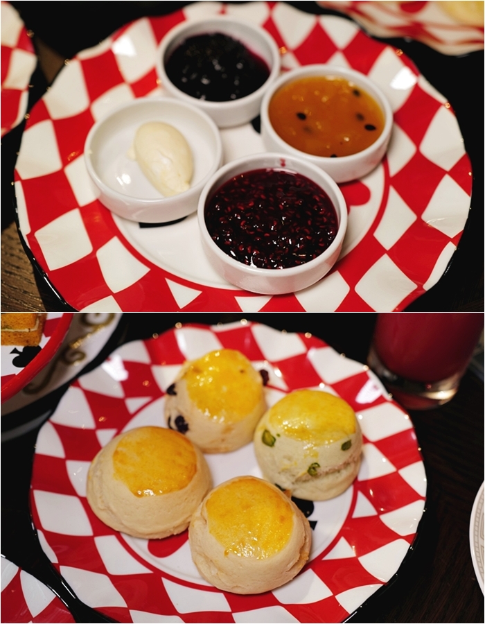 現場餐車服務 現場餐車服務主要是提供司康、她們家司康的口味有甜橘、黑巧克力、葡萄乾、開心果跟原味五款,搭配三款自製果醬及康沃爾忌廉醬來食用。