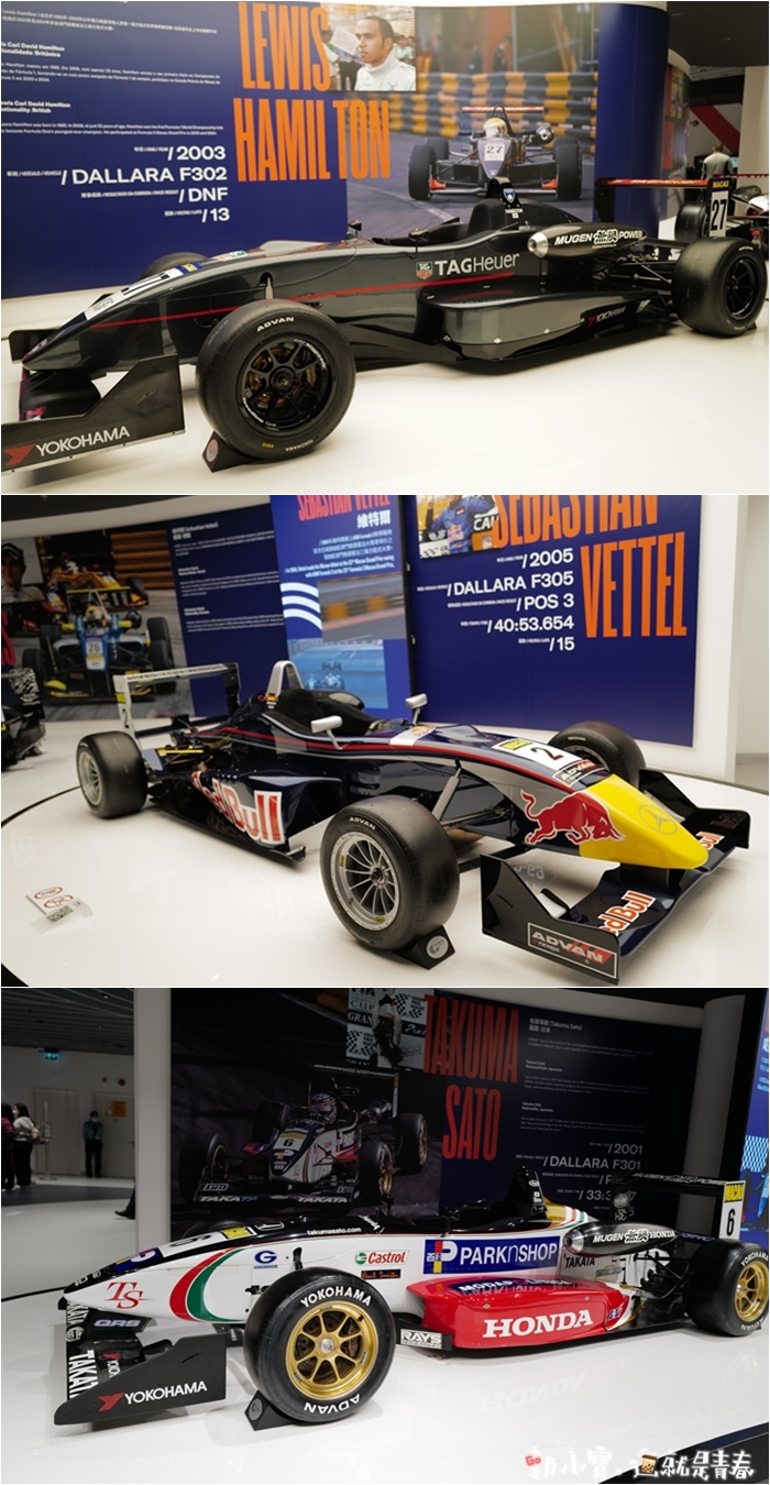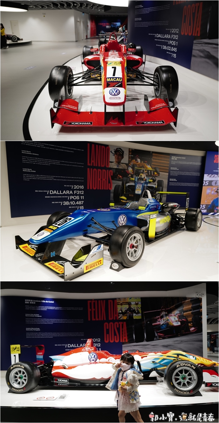 | 從二樓繞回一樓後就可以看到一樓的主題是澳門格林披治大賽相關展出,一樓的展廳展示澳門格蘭披治大賽車早期方程式賽車還有三級方程式大賽陳列展品,很多出賽過的相關車型都有展出。 |